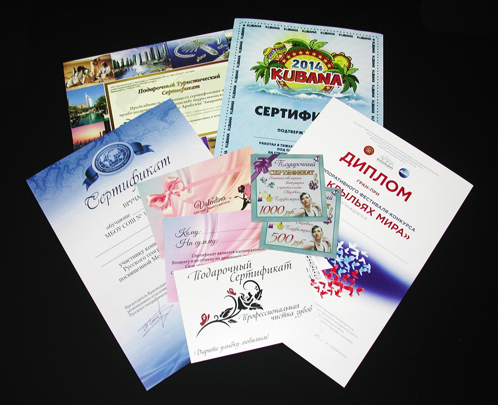 Изготовление и печать сертификатов, дипломов и грамот