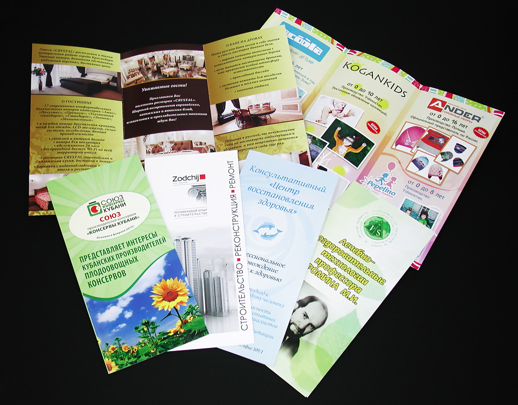 Мы напечатаем для вас буклеты и лифлеты в Краснодаре на различных видах бумаги с любым количеством сгибов в течение одного дня.